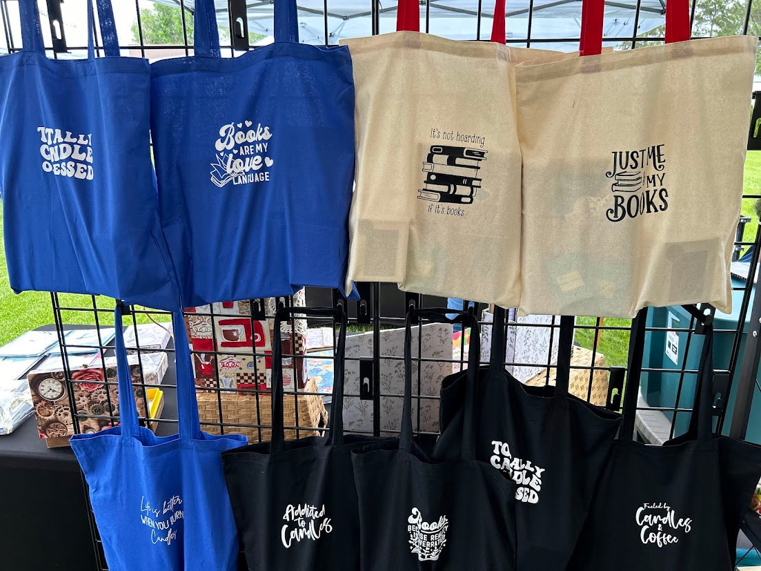 Carry your new literary treasures in style with our custom Book Bags—the perfect accessory for book and candle lovers! These cute, practical tote bags feature charming book and candle-themed sayings, making them the ideal companion for your shopping trips or cozy reading sessions. With spacious designs and sturdy handles, they’re perfect for toting around your favorite reads and treasures. Plus, with styles that may vary, each bag offers a unique touch to complement your personal taste. Whether you're out and about or curled up with a good book, these bags add a little extra joy to every journey!